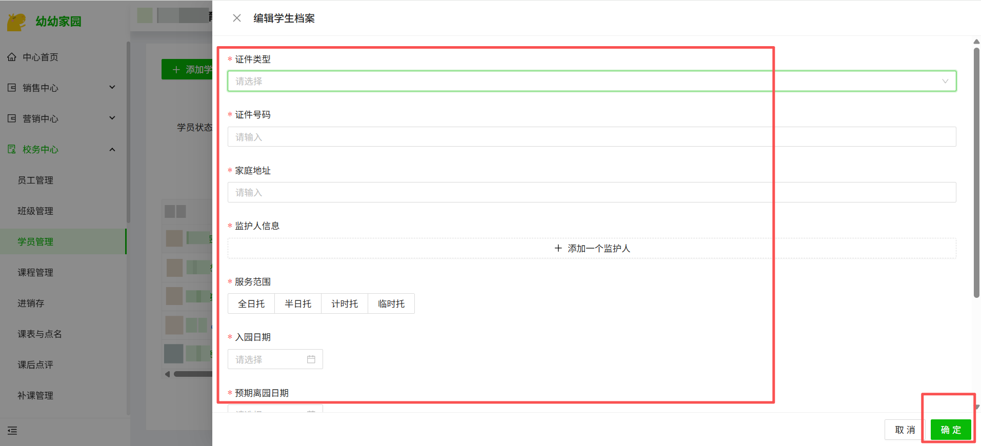 补充学生的证件、住址、监护人等信息后,点击右下角“确定”即可